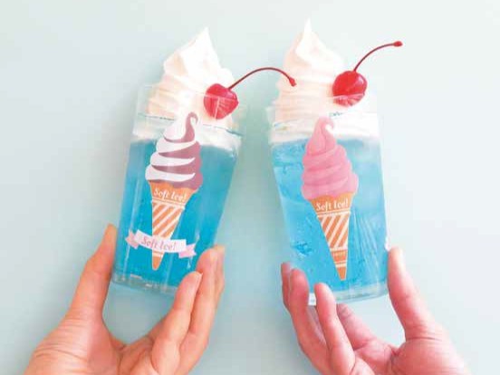 真っ白なソフトクリームが、チョコレートやストロベリーなど、さまざまなフレーバーに変身する様子が楽しめます。